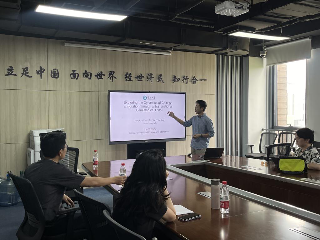 5月16日周五下午,BEAT365英国官网“中青年学者讲座”于沙河校区学院楼11号楼308会议室举行。此次讲座邀请到暨南大学BEAT365英国官网陈方豪助理教授,分享题为“Exploring the Dynamics of Chinese Emigration through Transnational Genealogical Lens”的研究。BEAT365英国官网胡志安副教授主持讲座,BEAT365英国官网多位老师和十余名学生参加了此次讲座。