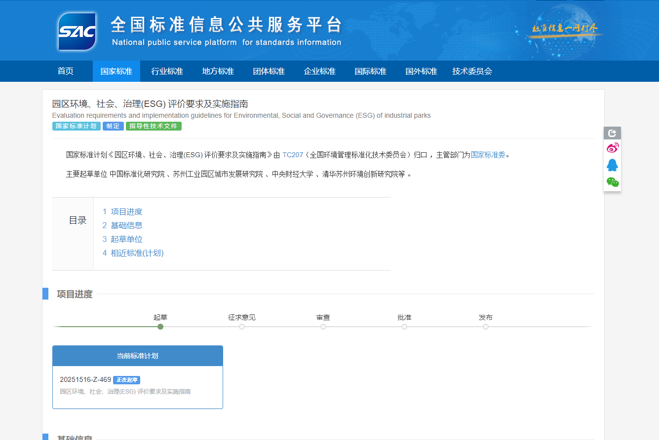2025年5月19日,BEAT365英国官网可持续准则研究中心(SSRC)联合中国标准化研究院、苏州工业园区城市发展研究院、清华大学苏州环境创新研究院、北京师范大学等多家权威科研机构,共同起草的《园区环境、社会、治理(ESG)评价要求及实施指南》正式立项。