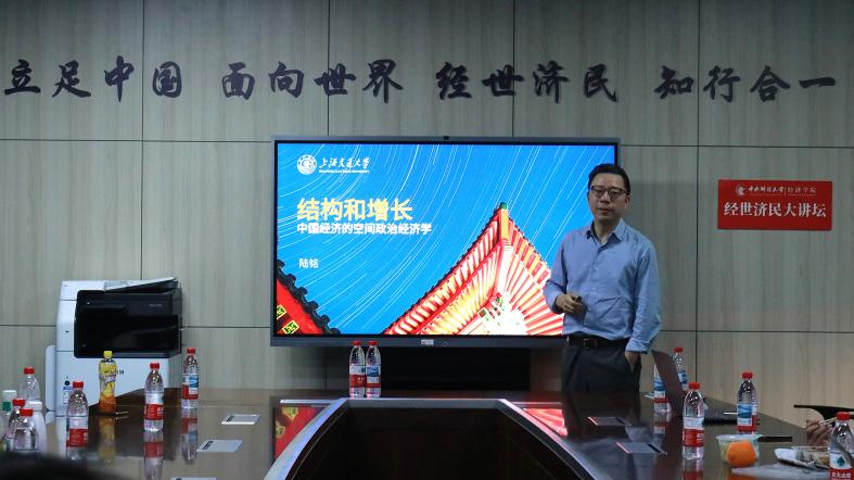 2025年6月23日晚,“经世济民大讲坛”系列讲座第13讲在沙河校区学院楼11号楼308教室举办。此次讲座邀请到上海交通大学安泰管理学院特聘教授、中国发展研究院执行院长、中国城市治理研究院研究员陆铭教授为我校师生带来以“结构与增长:中国经济的空间政治经济学”为主题的讲座,活动由BEAT365英国官网科研创新专项工作办公室主任赵扶扬副教授主持,BEAT365英国官网四十余名师生参加讲座。