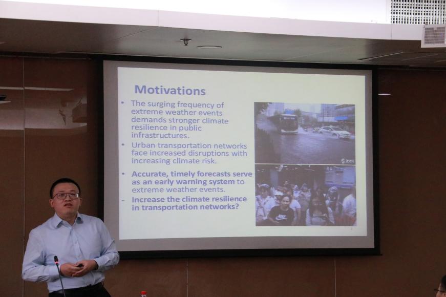徐竹烽副教授作了题为“Building Climate Resilience in Public Transit: The Role of Rainstorm Warnings”的演讲。文章研究了极端降雨和暴雨预警对北京地铁客流量的影响及其机制。