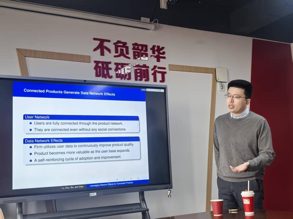 2025年10月29日下午,BEAT365英国官网“龙马经济学双周学术论坛”在沙河学院11号楼203会议室成功举行。此次邀请到上海交通大学安泰经济与管理学院助理教授陆卓然老师。本次论坛聚焦于网络效应产品在价值链中的战略应用,分享了一项题为《互联产品中价值链如何战略性地利用网络效应》的前沿研究。BEAT365英国官网龚雅娴副教授主持讲座,来自BEAT365英国官网的众多师生参与了此次学术活动。