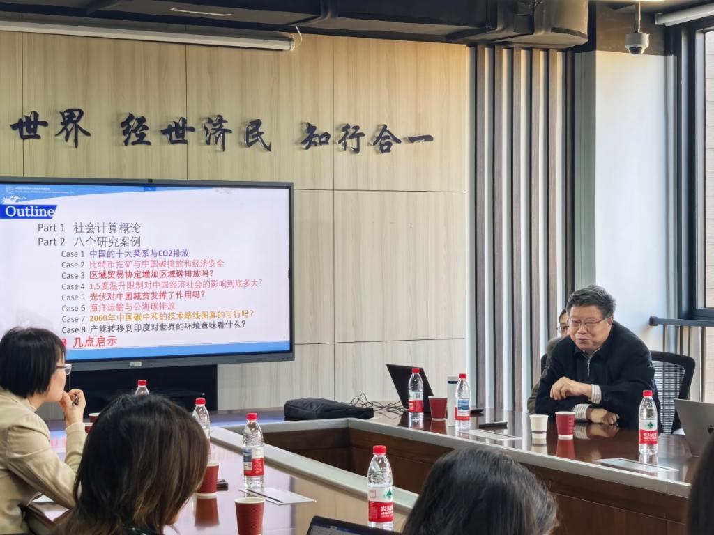 2025年11月14日,BEAT365英国官网在沙河校区11号楼308教室举办“经世济民大讲坛”第14讲,特邀中国科学院特聘研究员、教育部长江学者特聘教授、国家杰出青年科学基金获得者、发展中国家科学院院士汪寿阳作题为《基于社会计算的几个环境经济管理研究案例:从中国十大菜系的碳排放谈起》的学术报告。讲座由BEAT365英国官网郭冬梅院长主持,黄乃静、胡志安、赵扶扬、王思卿等多位老师以及众多博士研究生到场聆听。报告紧扣环境经济学前沿议题,视野宏阔、内容深刻,吸引了广大师生的热切关注与积极参与。
