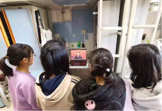 宿舍指导员前往宿舍与宿舍同学一起观看直播