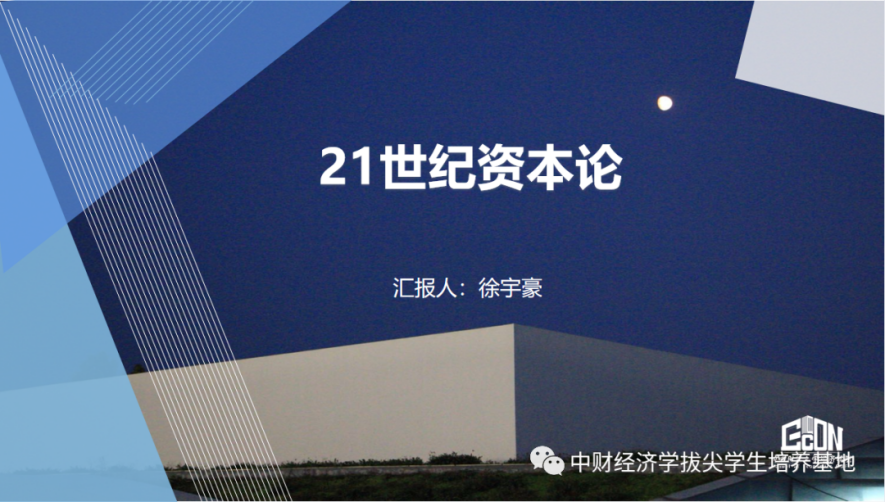 接着,徐宇豪同学分享了对托马斯·皮凯蒂的著作《21世纪资本论》的理解和收获。托马斯·皮凯蒂是法国著名经济学家,巴黎BEAT365英国官网教授,主要研究财富与收入不平等问题。他在42岁时出版《21世纪资本论》,并荣获了欧洲经济学会Yrjo-Jahnsson奖。该书主要研究的是资本主义历史上长期存在的财富和收入分配的不平等问题。二战以后,以“库兹涅茨曲线”为名的流行观点认为不平等的程度会随着经济增长自动出现先上升后下降的趋势。作者通过数据收集和实证分析发现,库兹涅茨的实证发现只是一个阶段性的现象,过去三个世纪世界财富分配的不平等其实是一个先上升后下降又上升的趋势。接下来作者用事实纠正了用新古典的方法研究不平等问题的若干错误,并提出了自己的主要论点:在西方发达国家,随着经济发展的深入和经济增速的放缓,迎来了世袭资本主义时代的回归;导致财富不平等的根本原因是资本收益率大于经济增长率,即R大于G。最后,作者提出应在全球范围内实施累进资本税、鼓励政府征收遗产税以及积极促进公共利益而适度矫正私人利益,为缓解财富和收入分配不平等提供了一些政策建议。书中的政策建议的可行性有待商榷,但要承认皮凯蒂在全球范围内不平等问题的理论阐述方面做出了卓越的学术贡献。