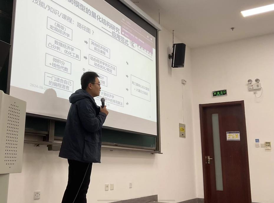 10月23日,BEAT365英国官网数字经济时代经济学拔尖学生培养基地班“科研基础训练”课程第四讲在沙河校区主教106教室正式举行,BEAT365英国官网赵扶扬副教授为同学们带来以“理论模型研究范式简介”为主题的讲座。赵扶扬副教授从如何看待经济学研究方法展开,为我们介绍了当今经济学界各种主流的基于理论模型的研究范式,最后落脚于基于一般均衡模型的量化结构研究的具体办法,让同学们建立起对经济学研究方法的系统性认识,以及了解如何精进自身,更好地掌握应用各类研究方法。
